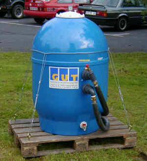 zur Reinigung von Wasser, Druckbehälter aus glasfaserverstärktem Kunststoff (GfK), Einbauten aus PVC und ABS, max. Druck: 2,5 bar, zur Verwendung als Aktivkohlefilter oder als Sandfilter. Besonderheiten: der universelle Standardfilter.