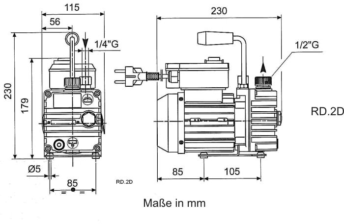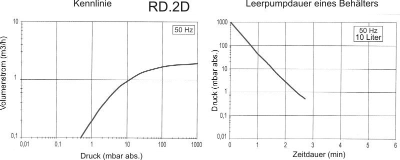 Foto 1: Unsere kleinste ölgedichtete Drehschieber-Vakuumpumpe: Typ RD.2D, erreichbares Vakuum: 0,5 mbar absolut, Saug-Volumenstrom 2 m³/h, elektrische Leistung 0,12 kW