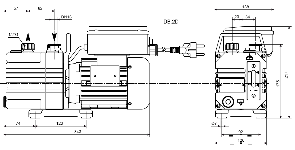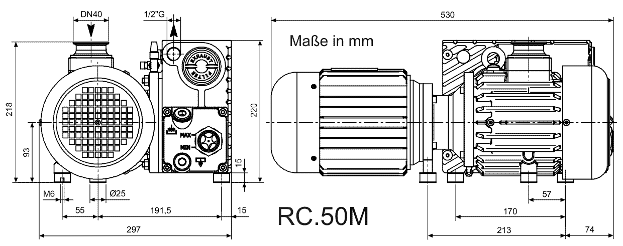 Foto 2: Unsere größte ölgedichtete Drehschieber-Vakuumpumpe: Typ DC.16D, zweistufig, erreichbares Vakuum: 0,005 mbar absolut, Saug-Volumenstrom 16 m³/h, elektrische Nenn-Leistung 0,75 kW, besonders geeignet für Forschungsinstitute und die Klimatechnik. Dieses Modell gibt es auch in ex-geschützter Ausführung um brennbare Gase abzusaugen.