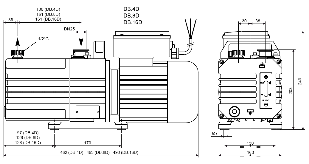 Diese leistungsstarken Vakuumpumpen sind für den Fein-Vakuumbereich ausgelegt (Endruck < 0,5 mbar absolut). Mit diesen Pumpen können Behälter evakuiert werden. Das Vakuum-Niveau kann dann dauerhaft gehalten werden. Ein dauerhafter Betrieb bei nur geringem Unterdruck (= hoher Luft-Volumenstrom) wird nicht empfohlen. Die Abluft dieser Pumpen wird standardmäßig nicht gefiltert. Falls erforderlich, können spezielle Abluftfilter angebaut werden.